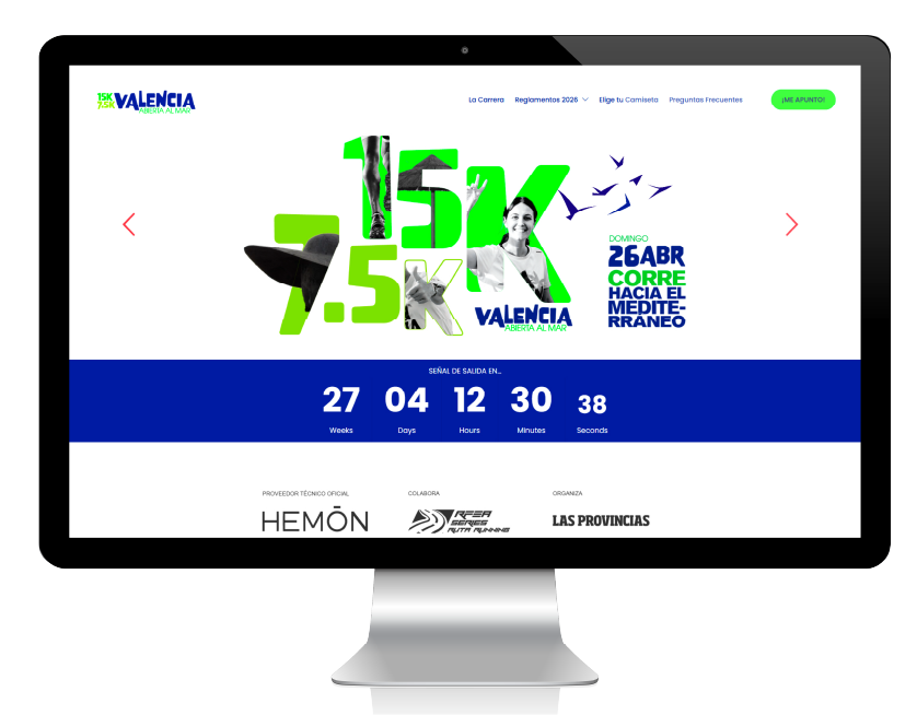 The 15K Valencia Abierta al Mar is a popular race organised by the newspaper Las Provincias that will celebrate its 14th edition in 2026. In 2022, I redesigned the race’s branding, and since then I have created its entire communication campaign, including the website, displays, social media and print materials, as well as all the elements of the race itself, such as starting arches, signage and T-shirts.