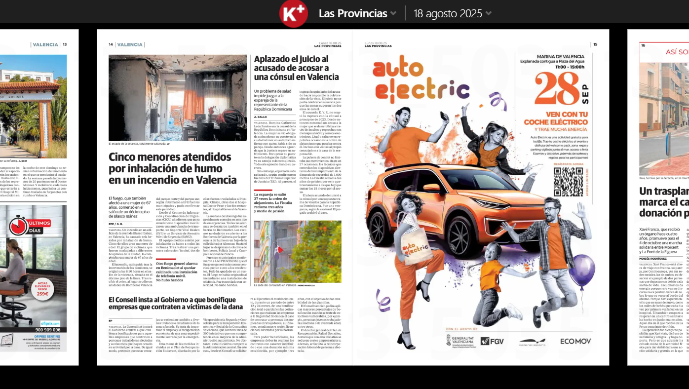 Autoelectric’s campaign had a strong presence in the Las Provincias newspaper throughout the summer, communicating the festive nature of the event aimed at electric vehicle users. The event, held at La Marina in Valencia, invited participants to show off their cars, share experiences with other drivers and enjoy exclusive benefits such as welcome packs and prize draws.
