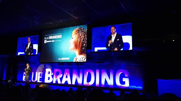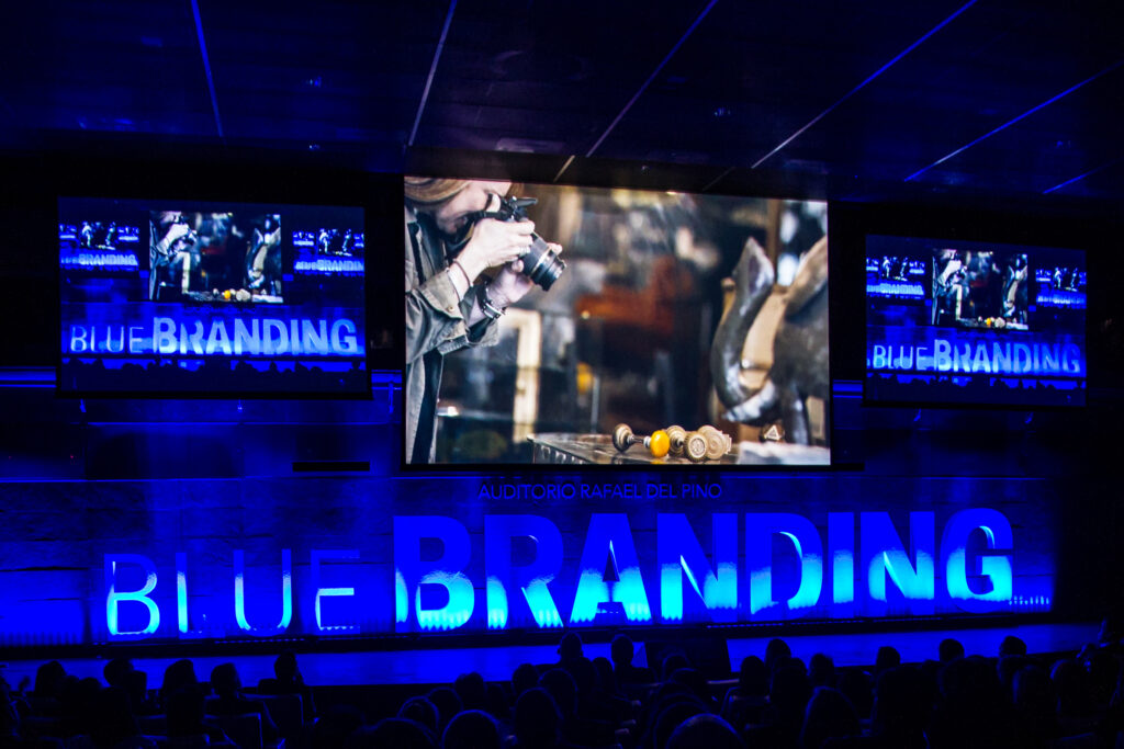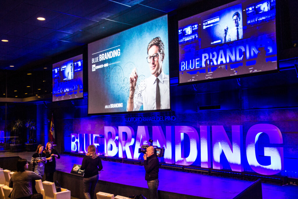 Details are always important, but they are especially so when it comes to events. In an indoor space, lighting is essential for highlighting all the panels and ensuring they appear in chromatic harmony with the speaker on stage. This particularly caught the attention of attendees, who mentioned it on Twitter with the hashtag #BLUEBRANDING