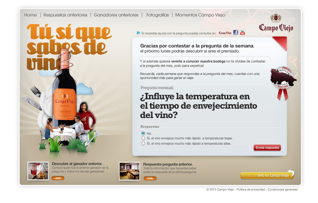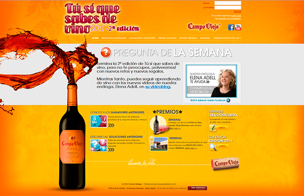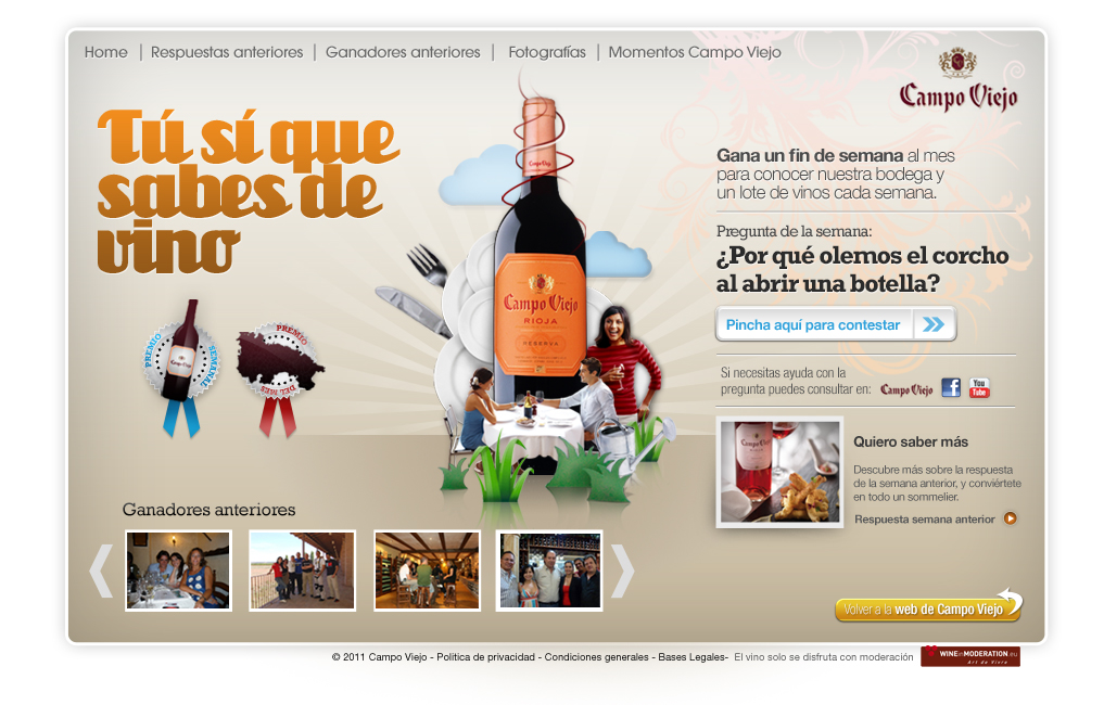 Following the success of the first edition of ‘Tú sí que sabes de vino 2011’, which attracted more than 3,000 participants per week, the brand continued with a second edition featuring new questions: ‘Where does the colour of wine come from?’, ‘Why do we smell the cork when opening a bottle?’ or ‘What is the difference between white and red wine?’