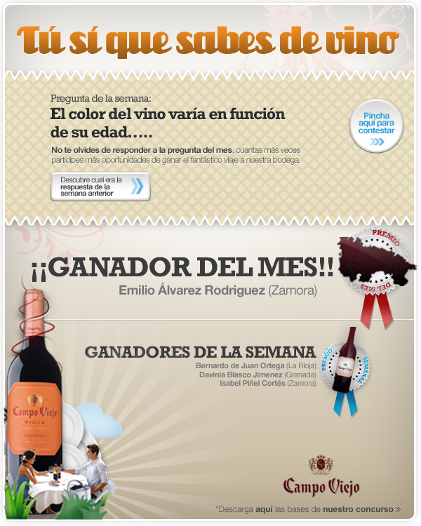 In its weekly email campaigns, Campo Viejo rewarded those with the most wine knowledge. Those who answered correctly were entered into a prize draw for Campo Viejo wine packs, as well as being given the opportunity to answer the question of the month. This was a more difficult question, with the chance to win a weekend in Logroño, including a visit to the winery, accommodation, wine tasting and dinner.