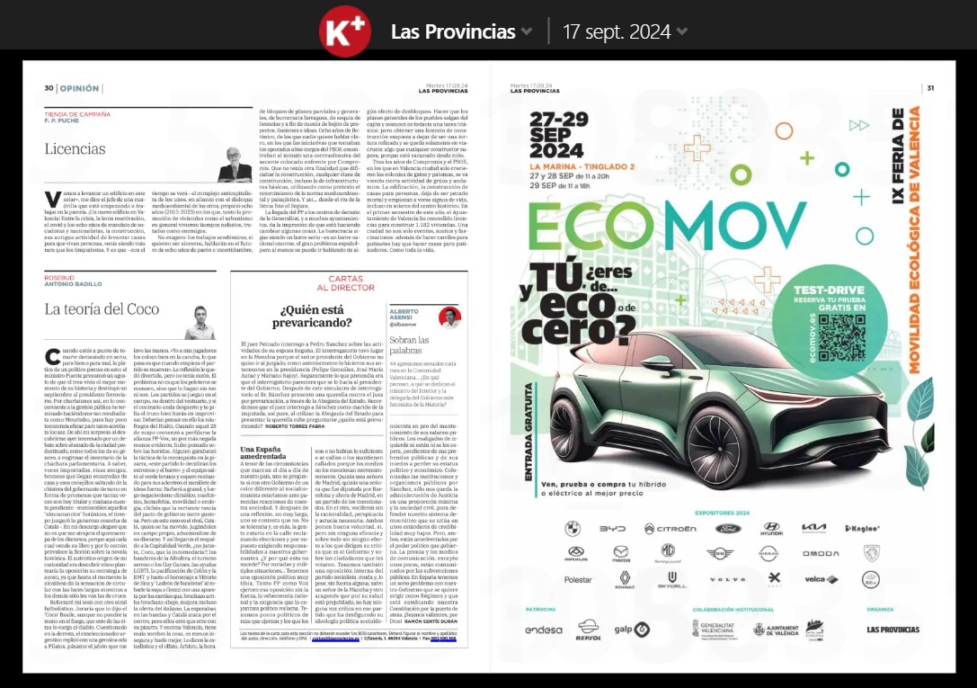 Las Provincias is a Spanish newspaper published in Valencia and founded in 1866. It is currently the second largest daily newspaper in the province of Valencia in terms of circulation and readership, according to the OJD and the Estudio General de Medios (EGM). Las Provincias has been part of the Vocento publishing group since 2000