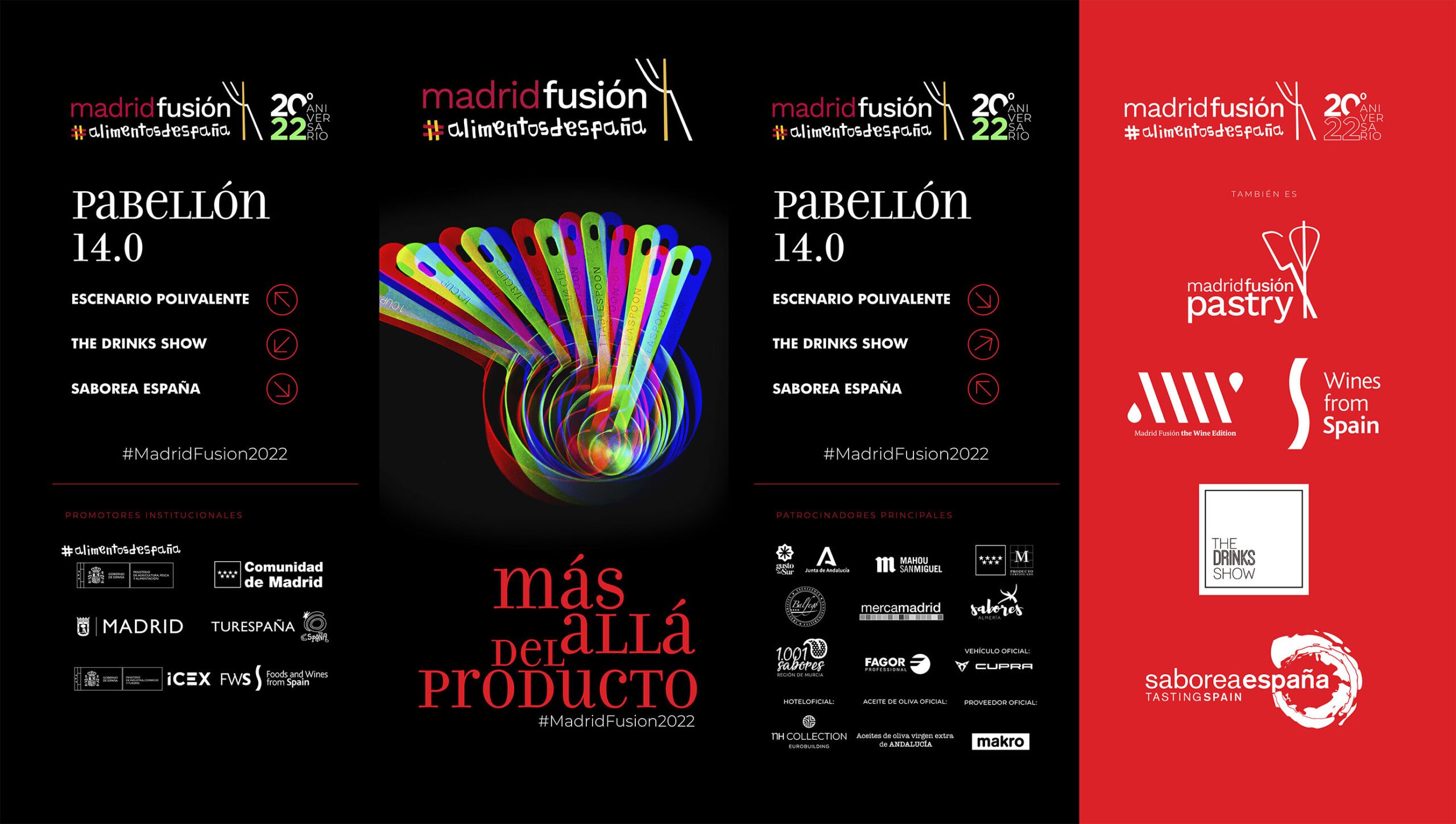 I created a comprehensive design for the visual identity, digital and print media for the 2022 edition of the Madrid Fusión international gastronomy conference, whose slogan was ‘Beyond the ingredients’. The creative concept celebrated the craft of cooking and featured basic kitchen utensils with distorted colour channels to graphically express the chef’s creative process. This was a particularly significant edition as the congress was celebrating its 20th anniversary.