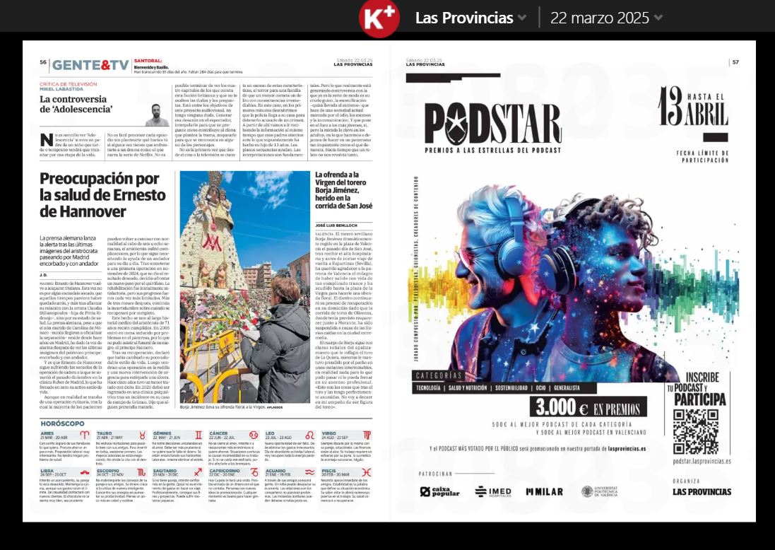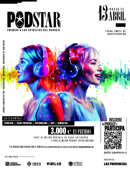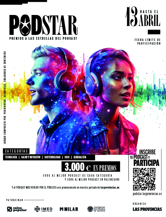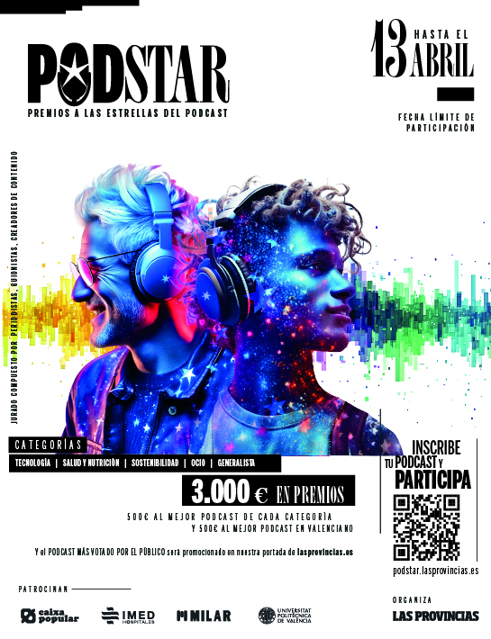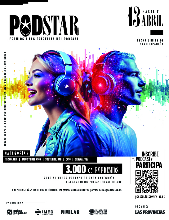 Naming, advertising and web for the Podstar Awards, an initiative by the newspaper LAS PROVINCIAS to highlight and reward the best podcasts.  The awards value aspects such as script, originality, technical quality and the ability to connect with the audience;  and  include categories ranging from technology to entertainment, including sustainability, health and current affairs.
